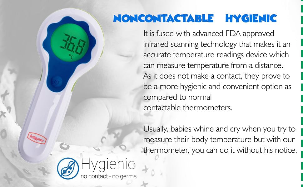 Get laser-accurate results, from a small handheld digital thermometer from Babynow compact, light, and accurate for babies, toddlers, kids, and adults.